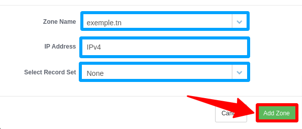 - Remplir les champs avec les informations requis, puis cliquer sur le bouton « Add Zone«