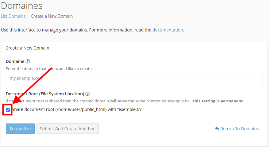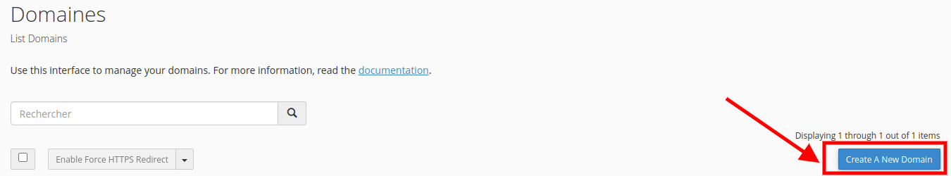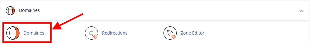 - Sous la rubrique « Domaines », cliquez sur » Domaines »