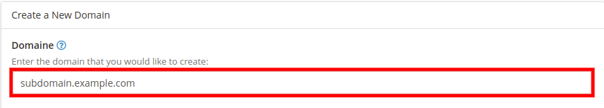 - Remplir la case suivante avec le sous domaine que vous voulez créer