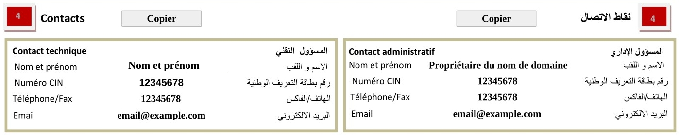 1. Dans la section 4 Contacts :