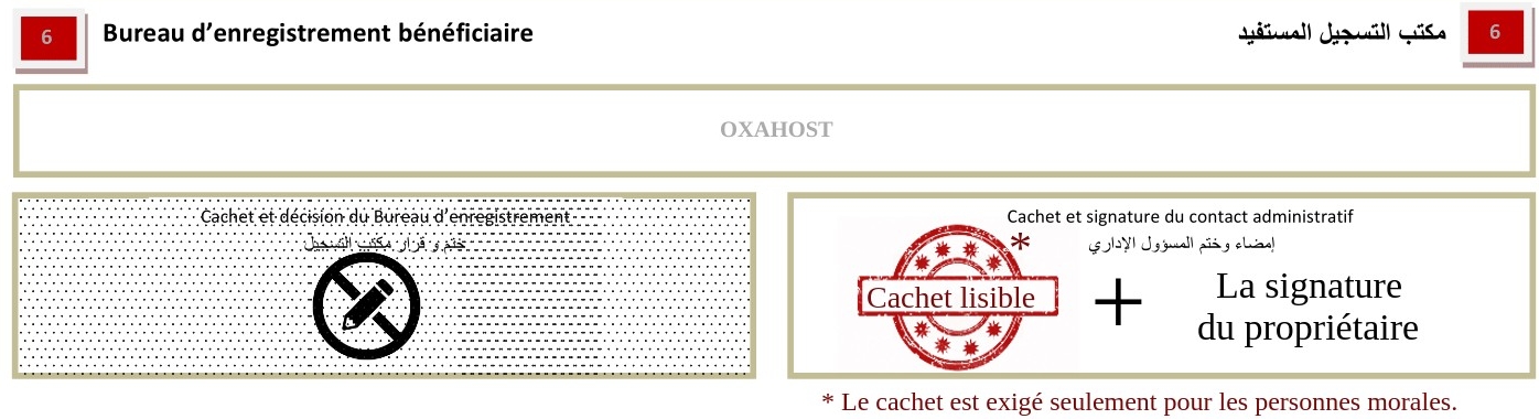 1. Dans la section 6 Bureau d’enregistrement bénéficiaire :