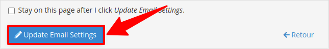 1. Cliquez sur « mettre à jour les paramètres de messagerie ».