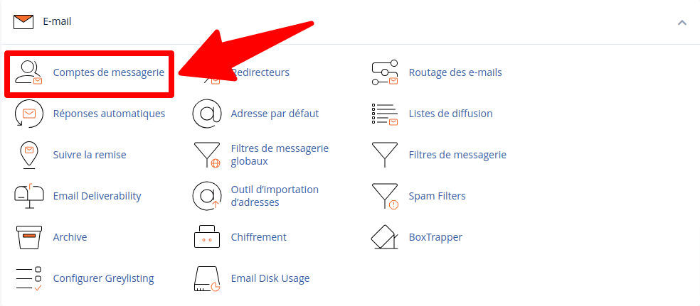 1. Faites défiler la page et cliquez sur l’icône « Comptes de messagerie ».