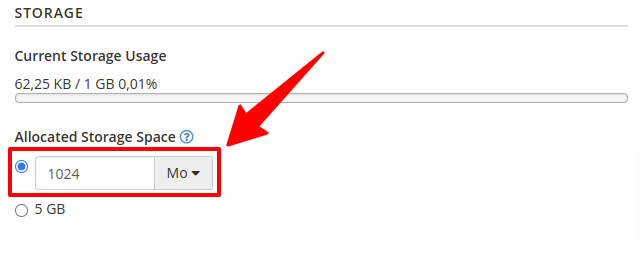 1. Choisissez le quota que vous souhaitez attribuer à votre boite de messagerie.