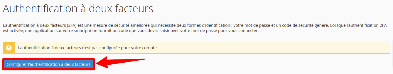 - Cliquez sur le bouton « Configurer l’authentification à deux facteurs« .