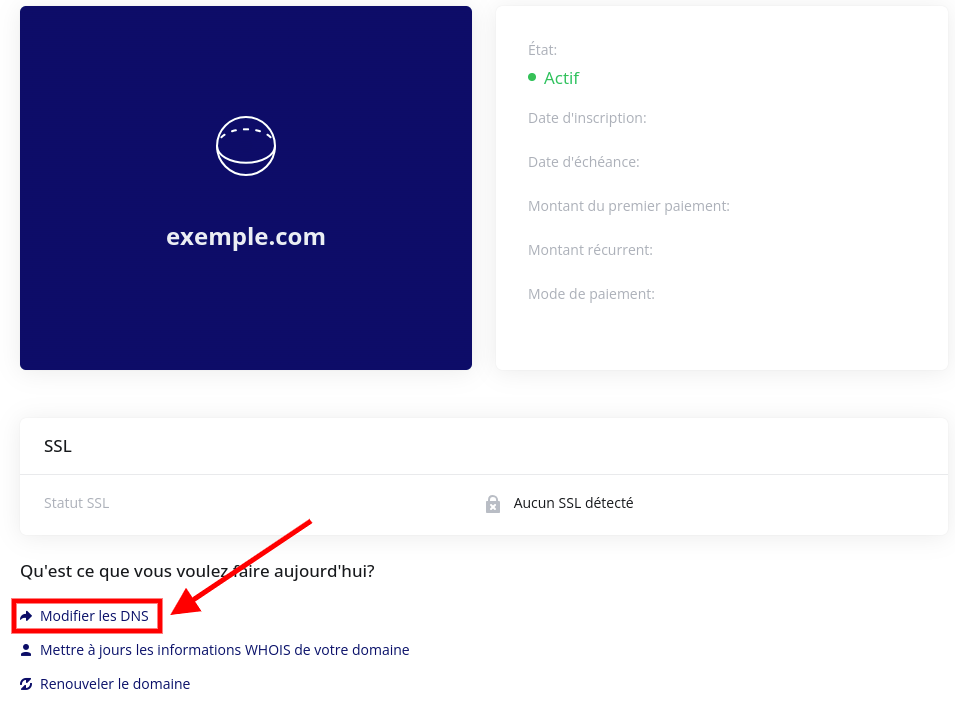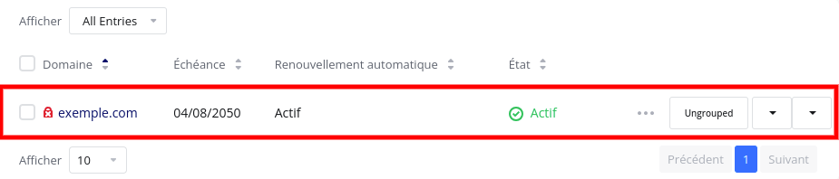 - Cliquer sur le nom de domaine lequel vous voulez modifier les serveurs de noms.