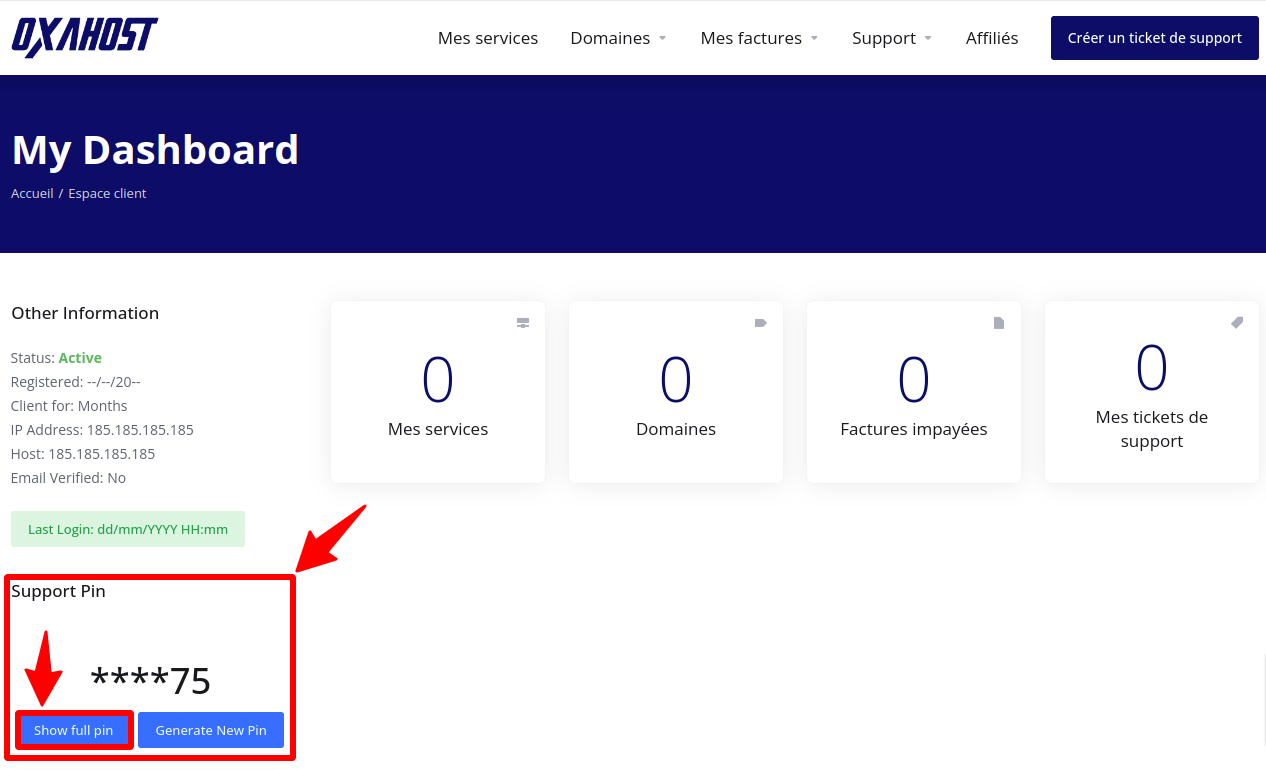 - Accédez à votre compte chez Oxahost.