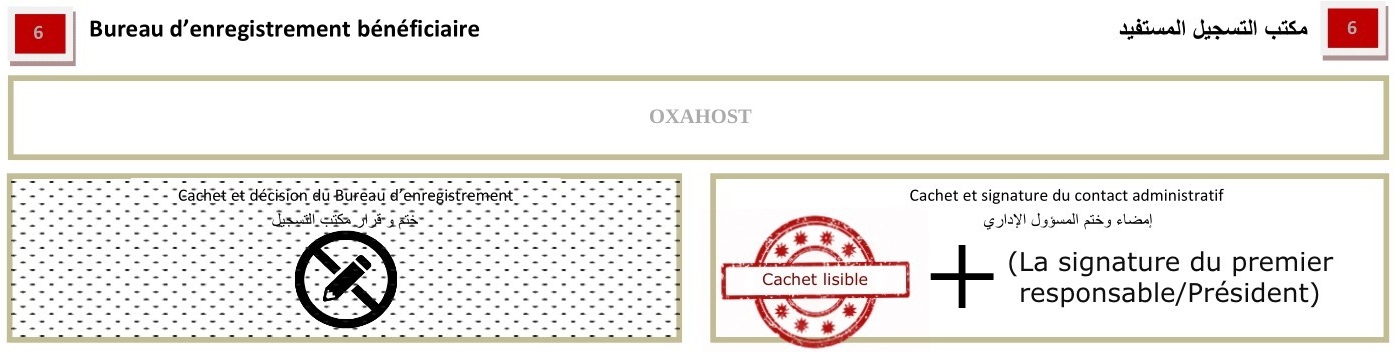 1. Dans la section 6 Bureau d’enregistrement bénéficiaire :