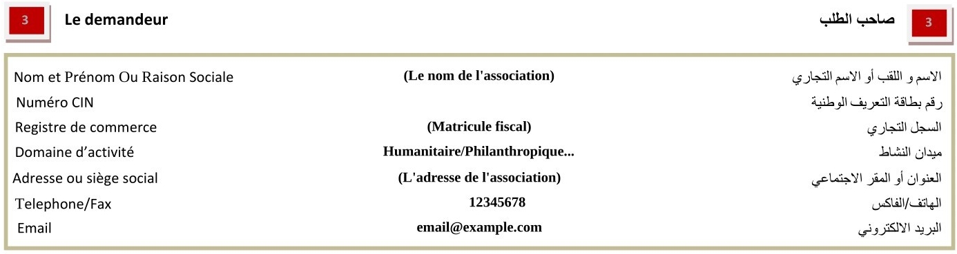 1. Dans la section 3 Le demandeur : Merci de remplir les champs avec les informations de l’association.